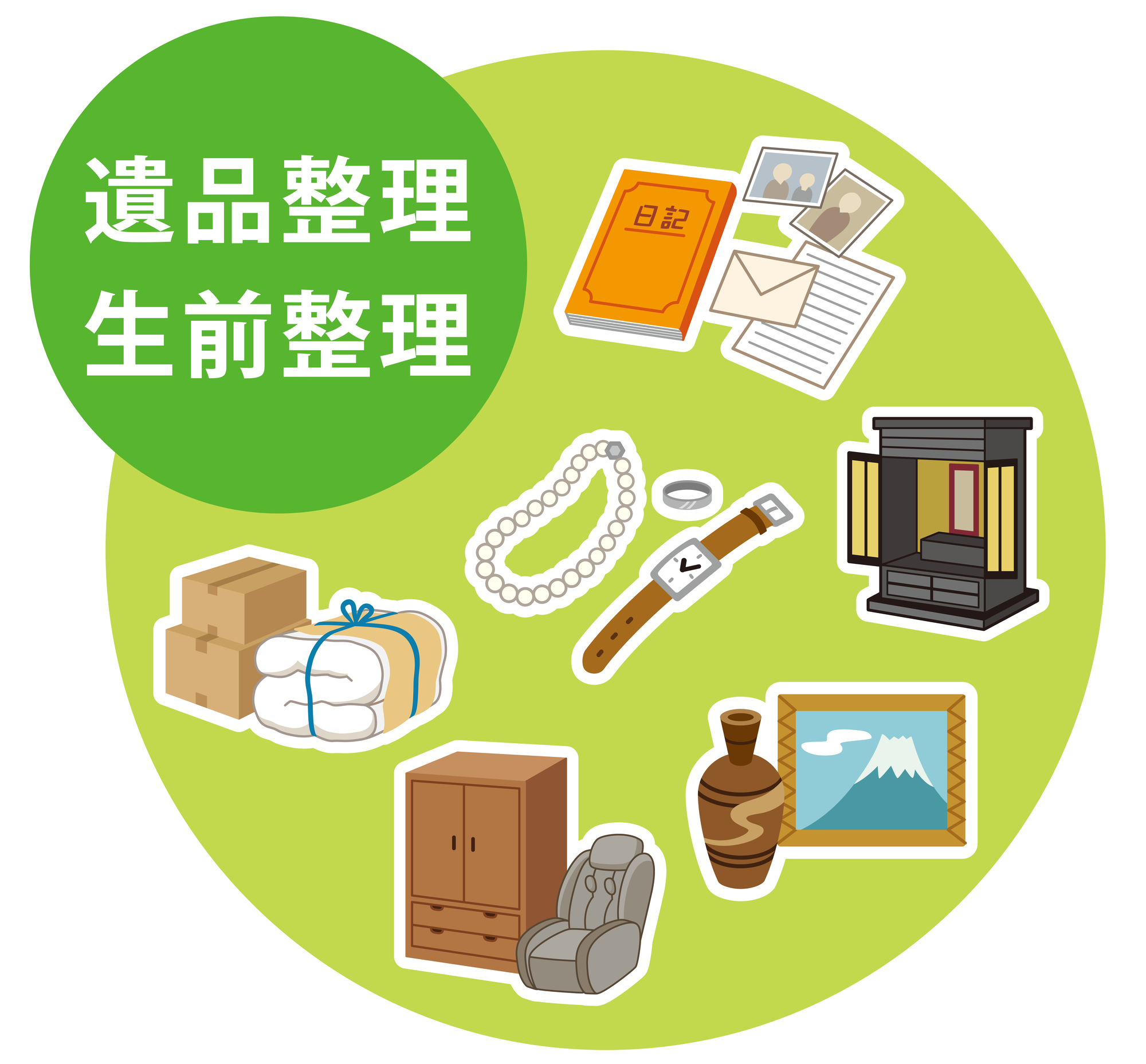 遺品整理のプロが大切な思い出を丁寧に扱いながら、整理をお手伝いします。必要に応じて買取も行い、少しでも負担を軽減出来るよう努めます。